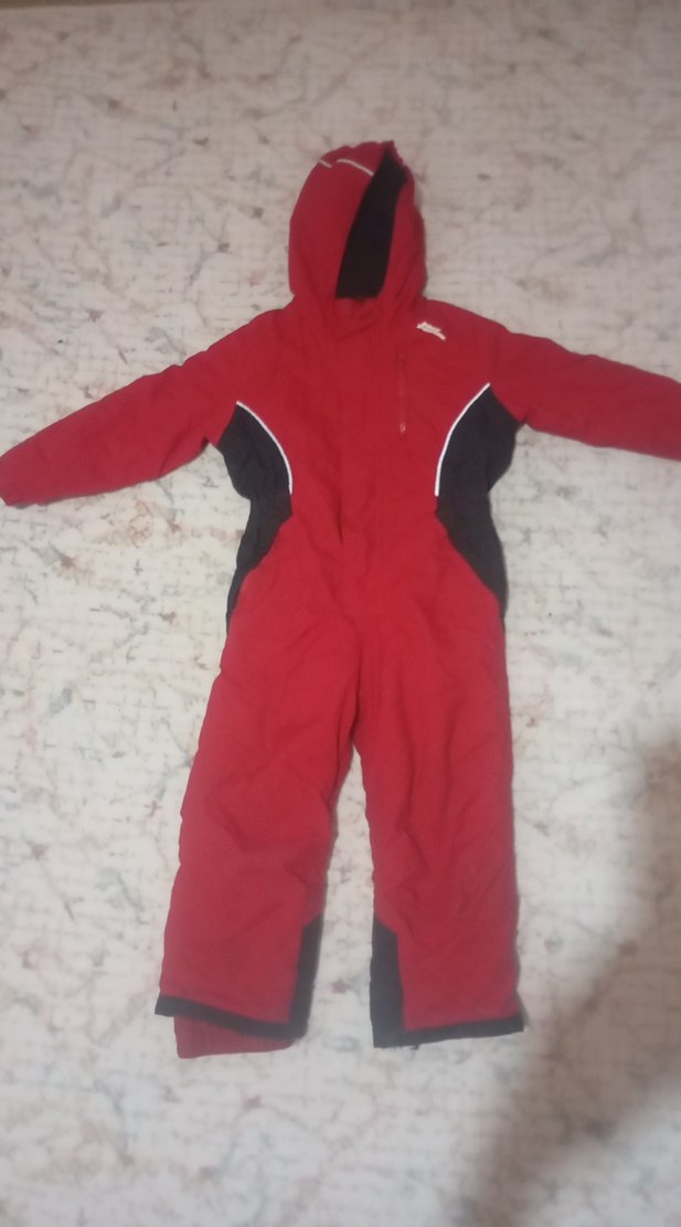 Koyu kırmızı renkte fermuarlı bebek erkek kayak tulumu, siyah detaylarla konforlu ve sıcak kumaştan üretilmiştir. ❄️