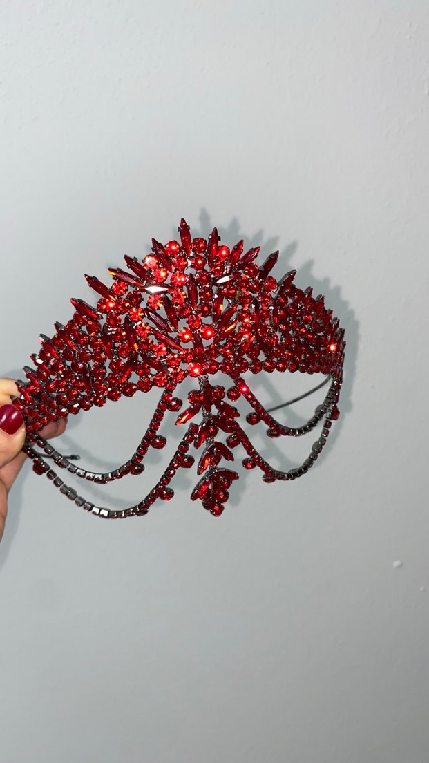 Koyu kırmızı renkte, cam boncuklarla süslenmiş payetli, avangart ve karşı kültür tarzında saç aksesuarı. ✨
