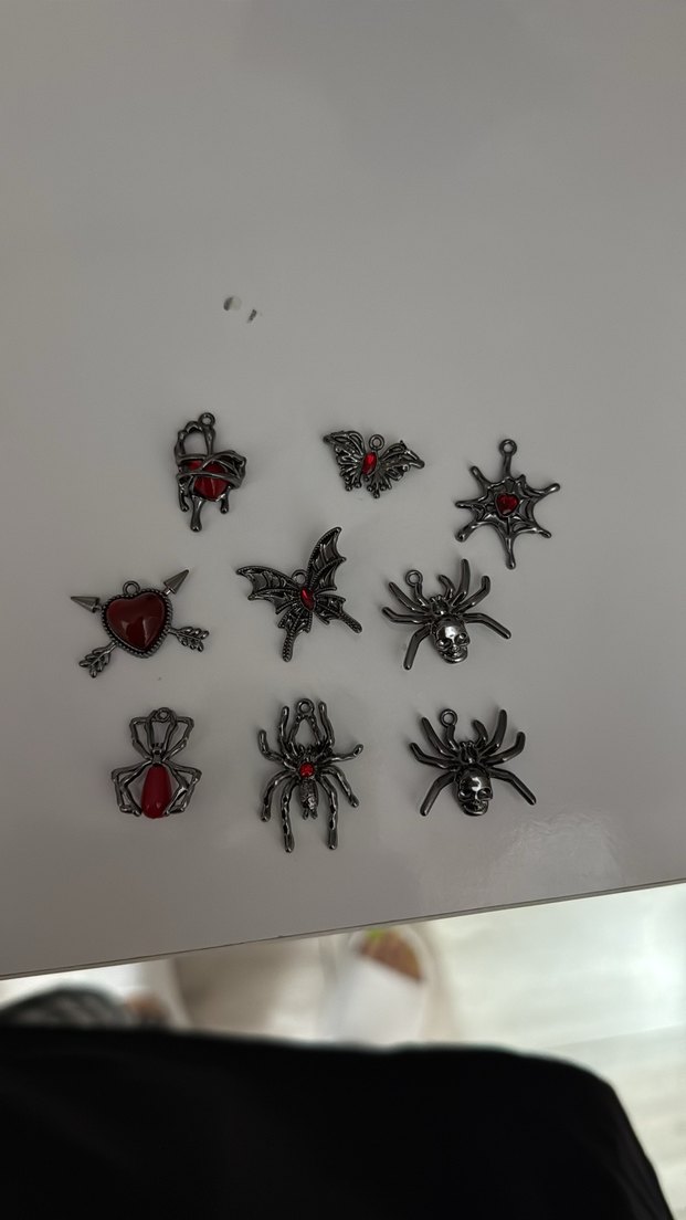 Koyu kırmızı taşlı, metal görünümlü örümcek, yarasa, kalp ve kafatası figürlü gotik tırnak süsleri seti ️. Adet fiyatı çelik kolye yapıp gönderiyorum gümüş adet fiyatı . Satın almadan önce ilan açtırın .