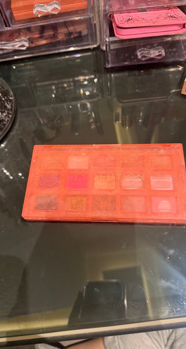 Kırmızı renkte, farklı dokularda koyu tonlarda göz farı içeren palet. Kırmızı kutuda sunulmuştur.