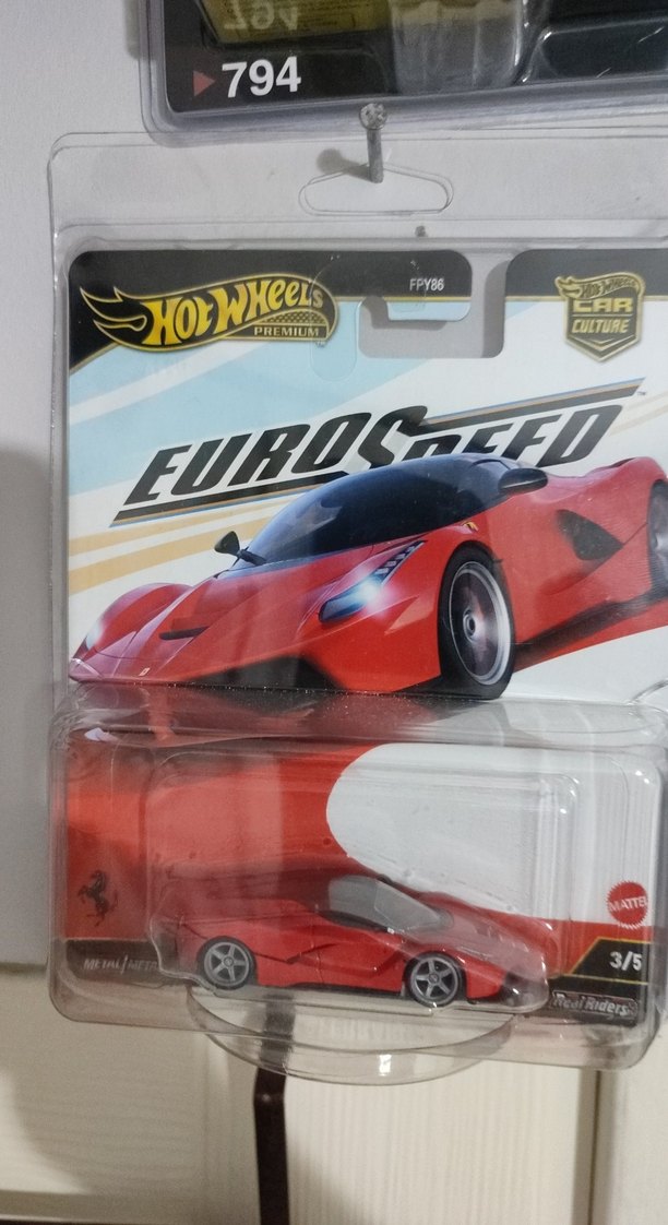 Bu Hot Wheels oyuncak araba, koyu kırmızı renkte ve hızlı EuroSpeed modellerinin şıklığını yansıtıyor.