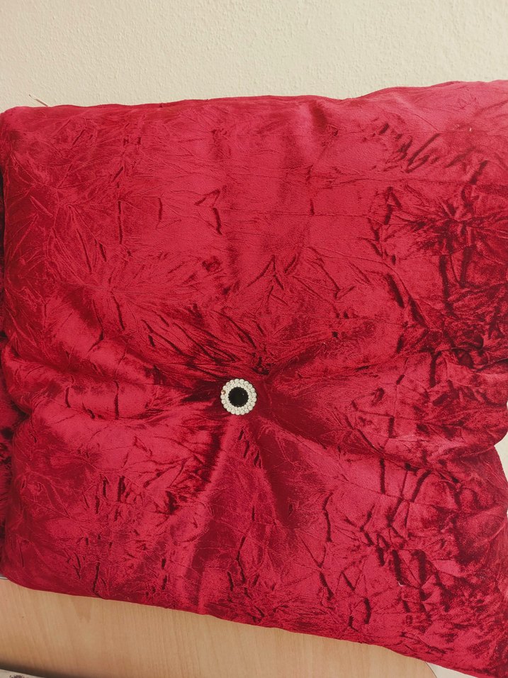 Koyu kırmızı kadife kumaş içi pufidik elyaflı yumuşacık Fermuarlı Önlü arkalı şık taş detayli kırlent. Evcil hayvanınız için şık bir yatak özellikle kediler bayılıyor ortasına kıvrılıp yatmaya. Salonda evinizin her köşesinde çok şık ve güzel duruyor. Minnoslar görünce hemen sahipleniyorlar zaten kimseye kaptirmiyorlar. Sevimli dostlarımız için şık bir yatak.Pürüzsüz ve canlı bir görünüme sahiptir. ️Kedi köpek minderi yatak olarak çok güzel Kare Ölçüleri 55 cm 55 cmdir.