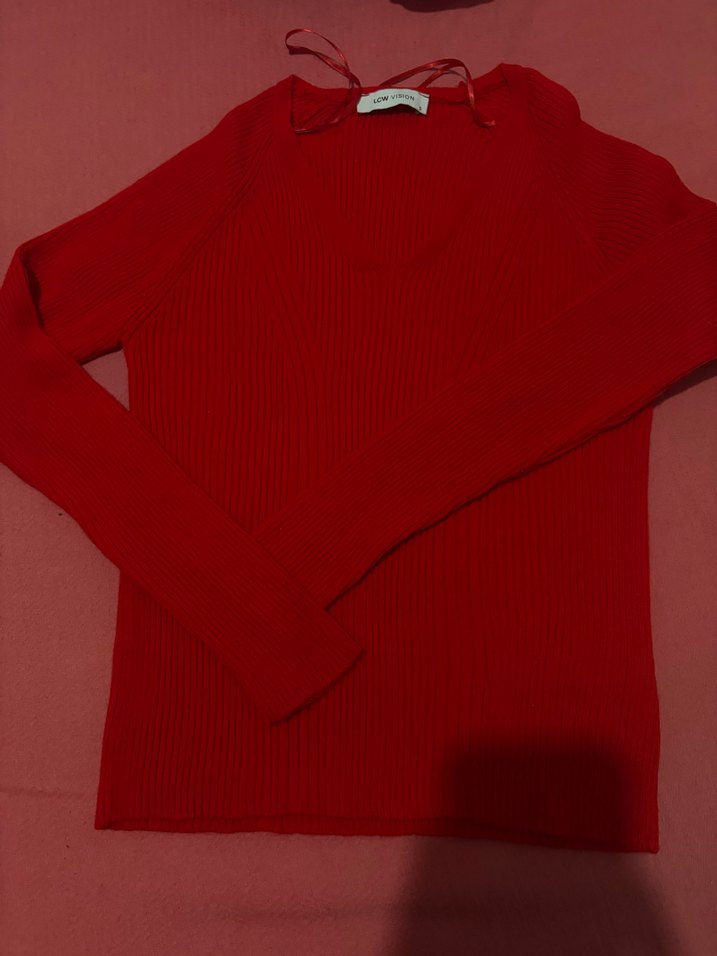 Koyu kırmızı renkte, uzun kollu ve bisiklet yaka kadın triko kazak. Vücuda oturan kesimi ve yumuşak örgü kumaşıyla rahat ve şık bir seçim.