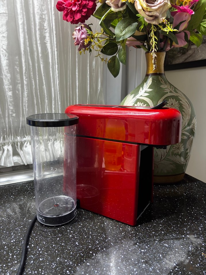 Koyu kırmızı renkte, şeffaf su haznesi ve kompakt tasarıma sahip kahve makinesi. ☕ Temiz sorunsuz çalışmaktadır.Ön panel kısmı eksiktir.Kullanıma engel teşkil etmemekte olup ürün videosunu inceleyerek alım yapınız.Kahve fincan ayarını kendiniz yapabilirsiniz.İade yoktur.Fiyat sondur.Nespreeso ve uyumlu kapsüllerle çalışır.#nespresso #ist #kapsülkahve