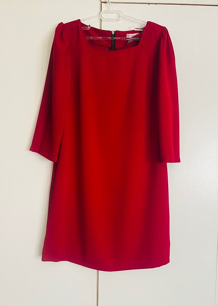 Koyu Kırmızı Kare Yaka Mini Elbise 40 Beden
