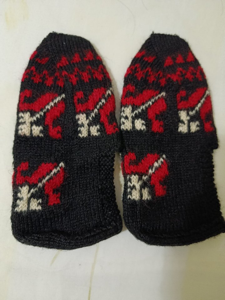 Yumuşak örme kumaştan yapılmış, nakışlı desenlere sahip koyu kırmızı kadın cetiki. Geleneksel tarzda, sıcak tutar.