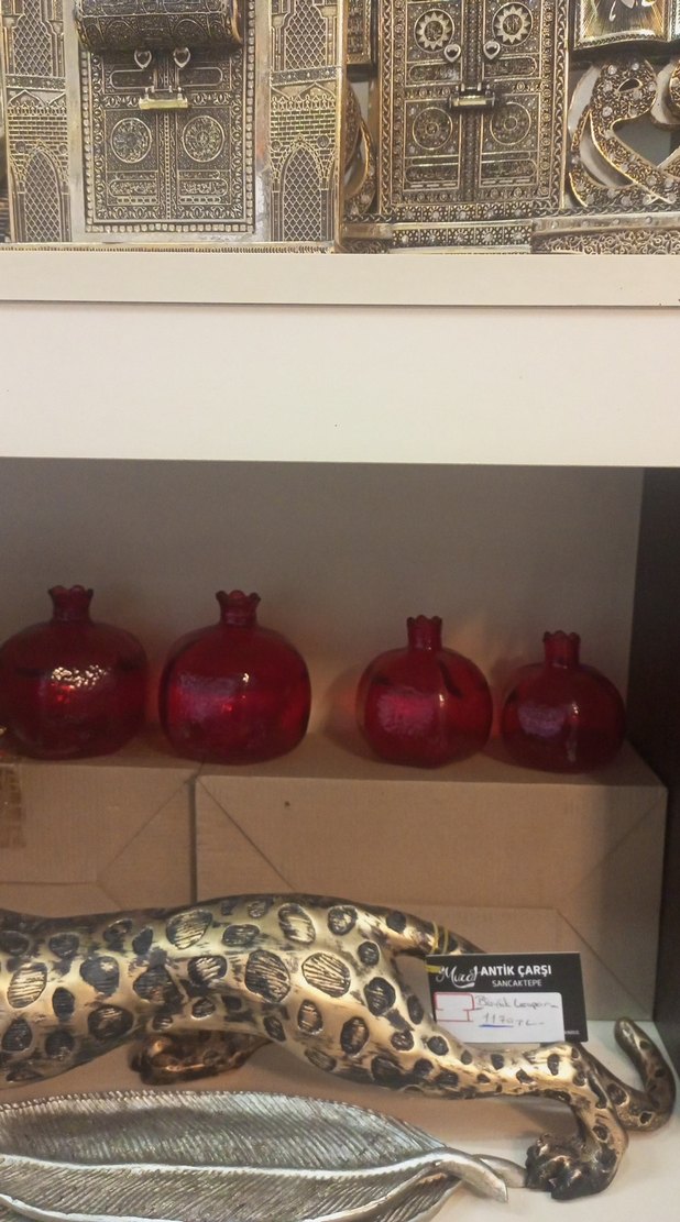 Parlak yüzeye sahip koyu kırmızı nar figürin seti, dekoratif sergileme için uygundur. cam