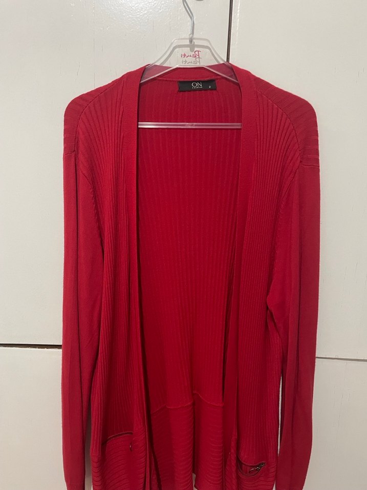 Koyu kırmızı renkli, uzun kollu ve bol kesim kadın hırka. Yumuşak yün kumaştan, bisiklet yaka ve minimal normcore tarzında, desensiz örgü tasarım günlük kullanım için uygundur.