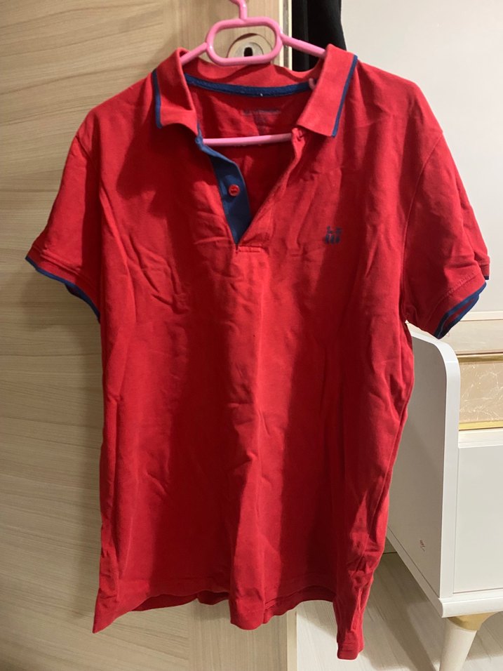 Erkekler için kısa kollu, düğmeli, yakalı ve pamuklu kumaştan yapılmış, koyu kırmızı renkte, sokak stiline uygun fitted kesim polo tişört.