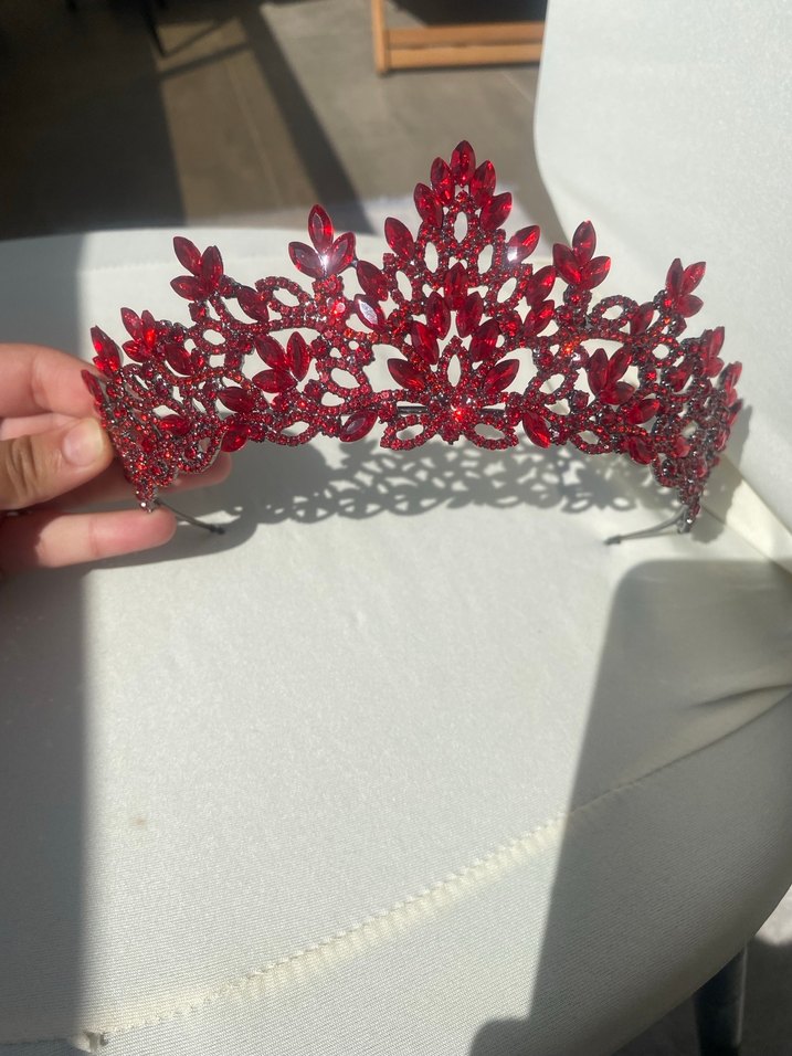 Koyu Kırmızı Payetli Bohem Taç
