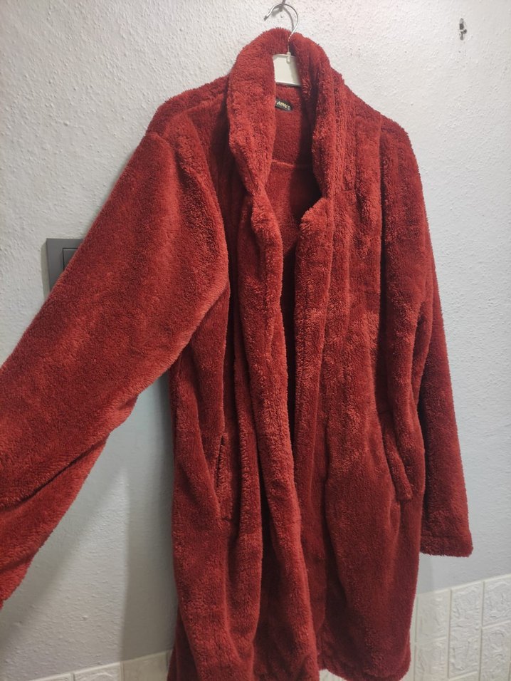 Koyu kırmızı renkte, yakalı ve uzun kollu kadın kabanı. Yumuşak, kürk detaylı kumaştan üretilmiş, bol kesim ve midi boyda, günlük kullanım için uygundur.