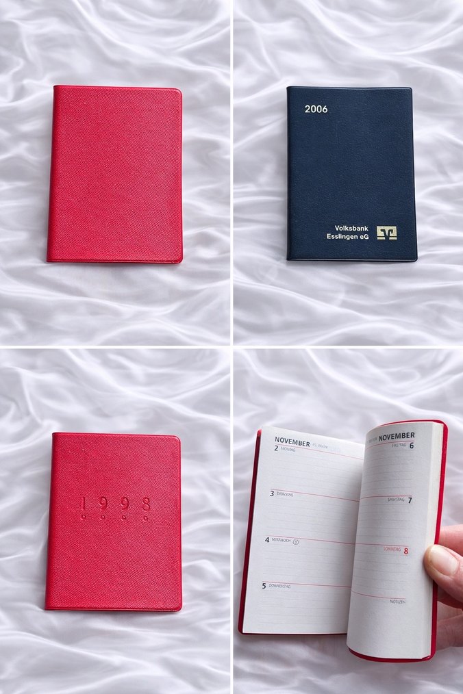Yumuşak kapaklı koyu vişne çürüğü tam rengi planlayıcı, önünde kabartmalı 1998 yılı ve içinde haftalık sayfalar yer alır. 1998 Vintage Ajanda – Kullanılmamış 1998 yılına ait bu vintage ajanda, dönemin sade ve zarif tasarım anlayışını yansıtan özel bir koleksiyon parçasıdır. Kapak üzerindeki kabartma yıl detayı, ajandaya karakteristik ve nostaljik bir görünüm kazandırır. Ajanda hiç kullanılmamıştır; iç sayfaları tertipli, temiz ve boştur. Hem not tutmak hem de dekoratif veya koleksiyon amaçlı değerlendirmek için idealdir. Vintage kırtasiye ürünlerine ilgi duyanlar, ajanda koleksiyoncuları ve nostalji severler için nadide ve zamansız bir üründür.