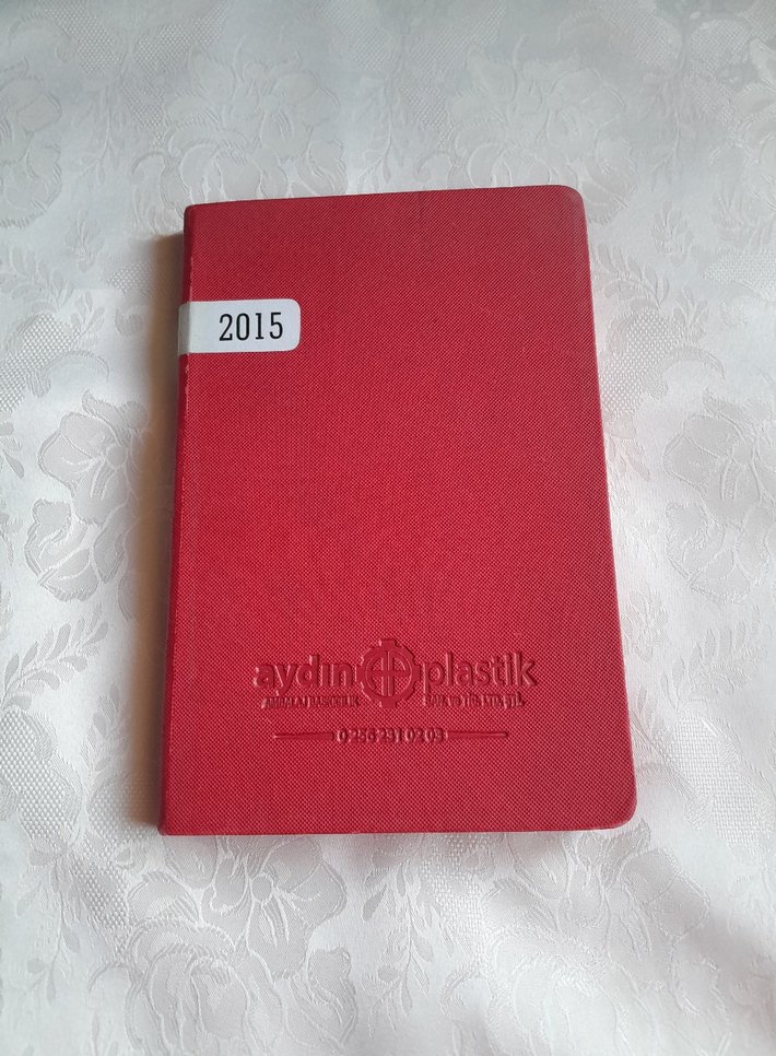 2015 tarihli koyu kırmızı renkli planlayıcı not defteri