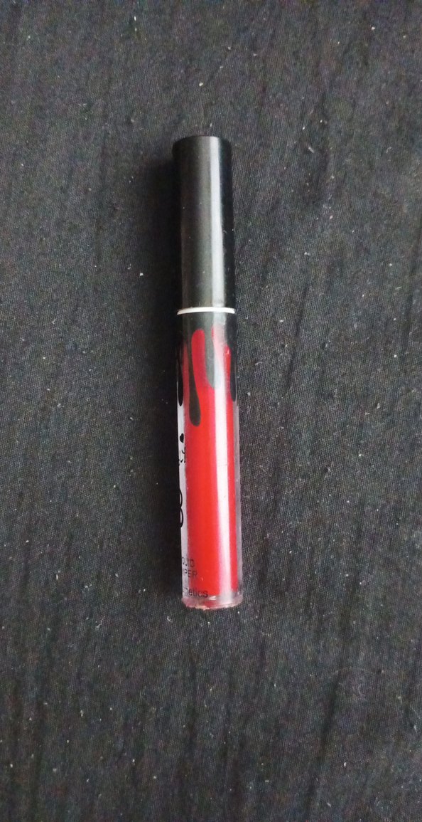 Koyu kırmızı renkte, şeffaf tüp ve siyah kapaklı ruj.