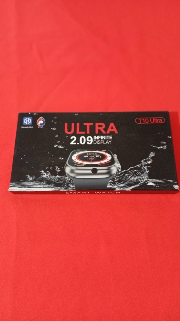Koyu kırmızı renkli ULTRA T10 Ultra akıllı saat, 2.09 inç sonsuz ekranıyla gelişmiş özellikler sunar. ⌚