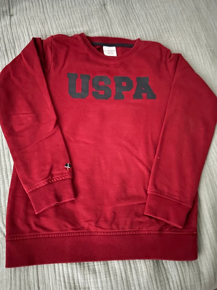 Bu koyu kırmızı erkek sweatshirtü, yuvarlak yaka ve uzun kolludur. Yumuşak ve sıcak kumaştan üretilmiş, rahat kesimlidir. Önünde USPA logosu bulunur.