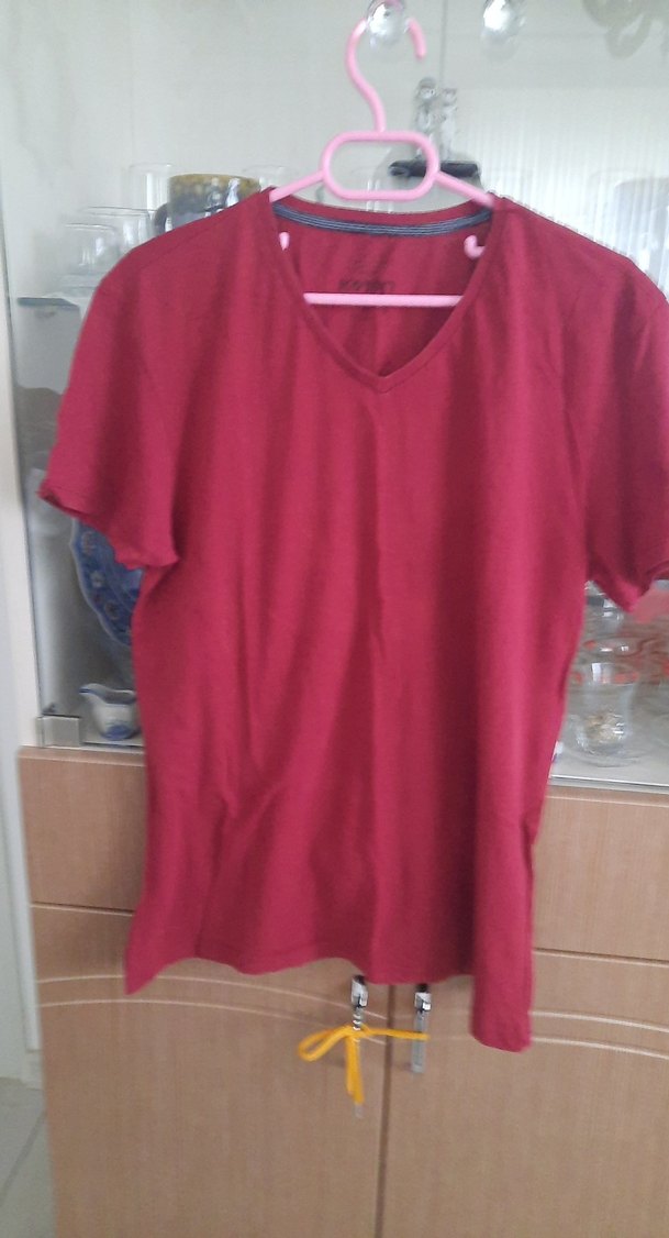 Koyu Kırmızı V Yaka Kısa Kollu Erkek Tişört