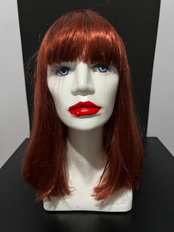 Koyu kızıl (Bakır) sentetik kumaştan yapılmış, cesur ve gotik tarzda, zahmetsiz şıklık sunan kadın peruk.