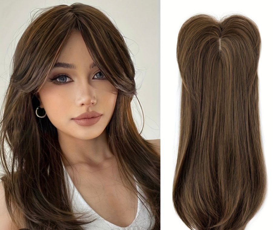Koyu Kumral/Açık Kahve Peruk/Çıtçıt Tepelik 50 cm Uzun