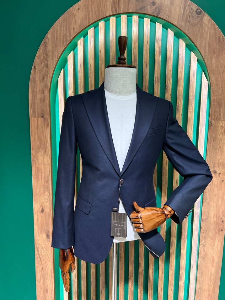 Düğmeli, koyu lacivert erkek ofis ceketi. Klasik ve çağdaş tarzda, kısa kesim, regular fit ve yakası kesik yaka şeklindedir. Uzun kolludur, desensizdir. Sıfır etiketli Ceket 50-52-54-56-58-60 beden mevcuttur