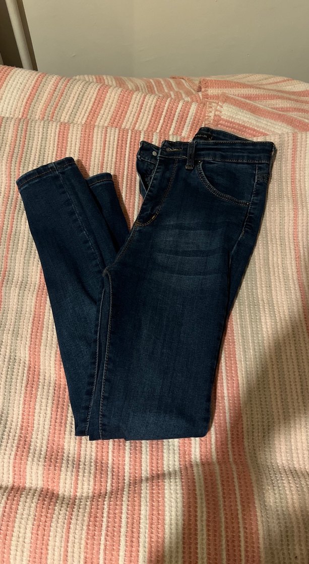 Koyu lacivert kot pantolon, dar kesim ve kemer tokası detaylıdır. Normal boyda, desen içermeyen, günlük rahat kullanım için uygundur. Az kıllanoldı