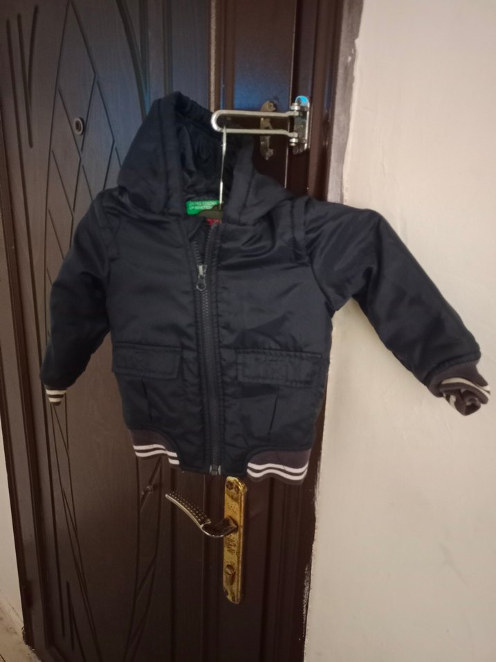 koyu lacivert kapüşonlu, fermuarlı erkek çocuk montu. Yumuşak ve sıcak kumaştan, rahat kalıplı, sokak stili için uygun bir üründür.