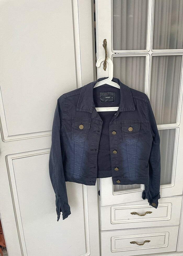 Ceket dar ve streçtir. Vücudu sarar yüksel bel kotlarla çok güzel duruyor. Sırt kısmındaki marka yeri soyuldu onun dışında bir kusuru yok. Arma tarzı birşeyle kapatılabilir.