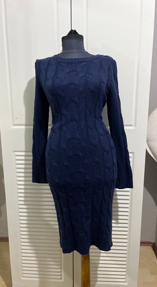 Bu fitted, uzun boy triko elbise, yuvarlak yaka ve uzun kollu olup, koyu lacivert rahat triko kumaştan üretilmiştir. Klasik ve şık ofis görünümü için uygundur.
