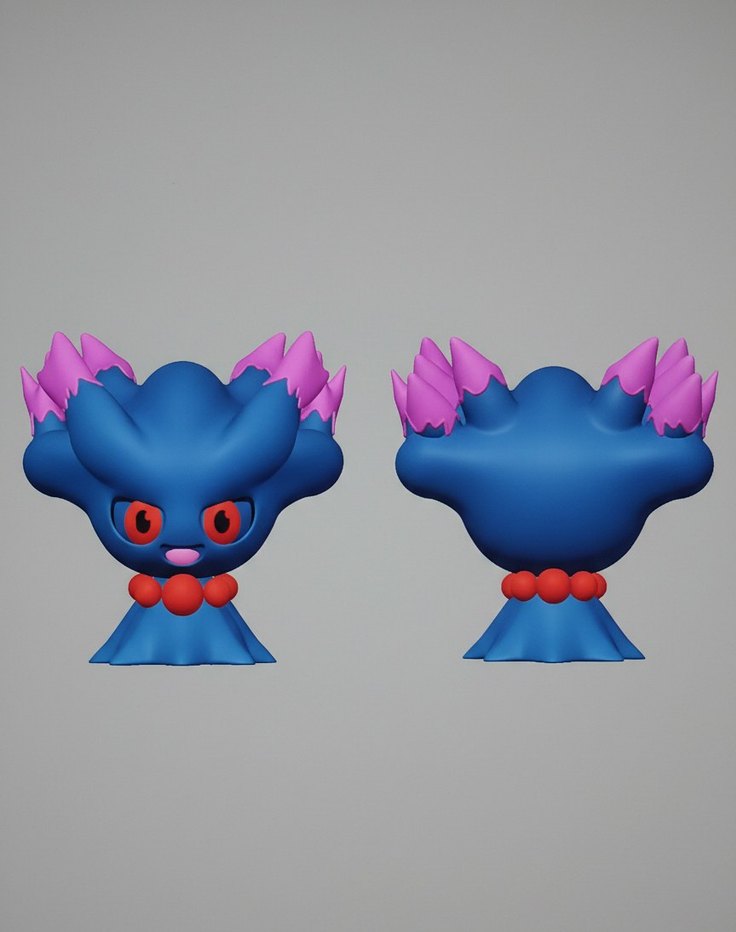 Koyu mavi renkte, pembe ve kırmızı detaylara sahip, benzersiz tasarımlı aksiyon figürü.
