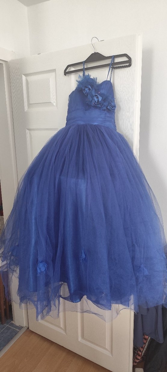 Koyu Mavi Askılı Uzun Abiye Elbise