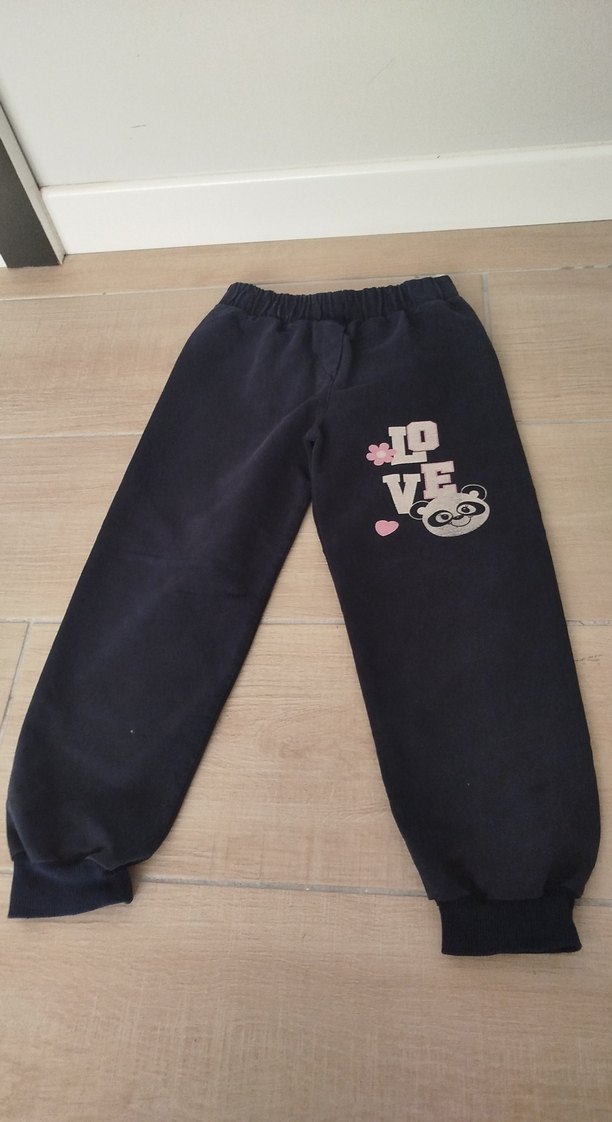 Yumuşak ve sıcak kumaştan, rahat kesim koyu mavi erkek çocuk eşofman altı, baskılı desen ve cırt cırtlı detaylarla sokak stili için uygun.
