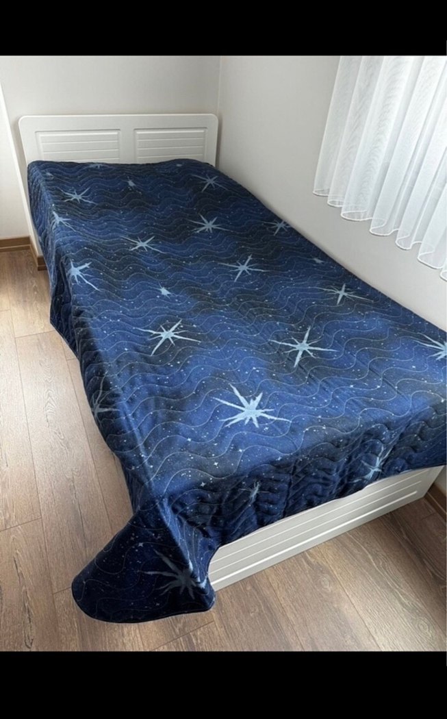 Koyu Mavi Batik Desenli Yatak Örtüsü