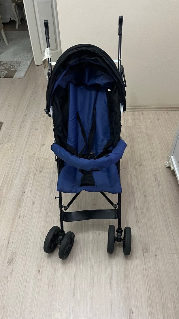 Koyu mavi renkte, yastıklı oturma alanı ve ayarlanabilir tenteye sahip bebek arabasıdır. Dört çift tekerlekli sağlam iskeleti ile rahat kullanım sunar.
