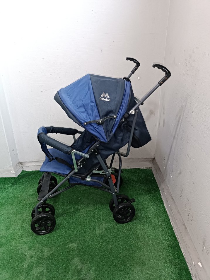 Koyu mavi renkte bebek arabası, katlanabilir tente, yastıklı oturma alanı ve sağlam tekerleklerle kolay kullanım sunar. Çift tutma sapı ve güvenlik barı bulunur. Hiçbir sorun sıkıntısı yok tertemiz sağlamdır alabilirsiniz bende birsürü bebek arabası var sayfama bakabilirsiniz