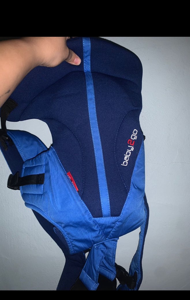 Koyu mavi renkte, yumuşak dolgulu kayışlara ve sağlam bağlama sistemine sahip bebek kangurusu . Rahat taşıma sağlar.