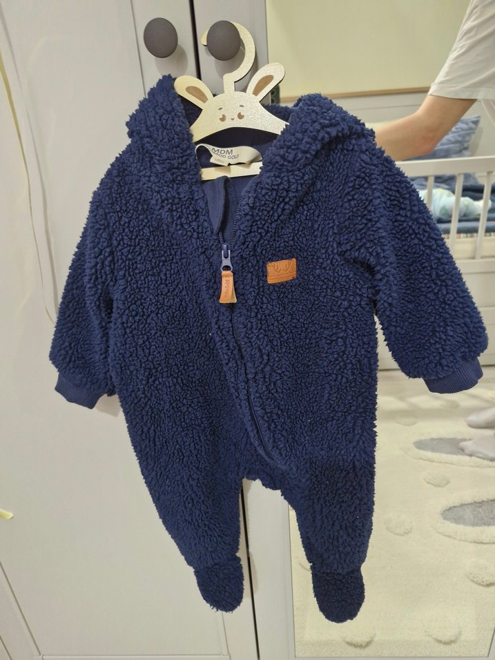 Koyu mavi renkte, kapüşonlu ve fermuarlı, yumuşak kürk dokulu bebek tulumu, sokak stili için uygundur. ❄️ e bebekten alındı. sayılı kullandık. sıfır fiyati.900 tl
