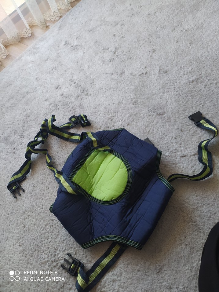 Ayarlanabilir kayışlara ve yumuşak iç astara sahip koyu mavi bebek taşıyıcı, CREDMEN markalı.