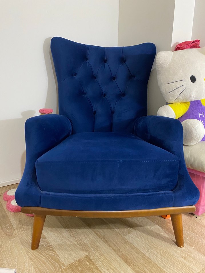 Koyu mavi berjer , yumuşak oturma kısmı ve sırt dayanağı, ahşap ayaklı ve rahat kolluklu. Hiç bir deformesi yoktur. Üzerine sayılı oturuldu yeni gibi o yüzden
