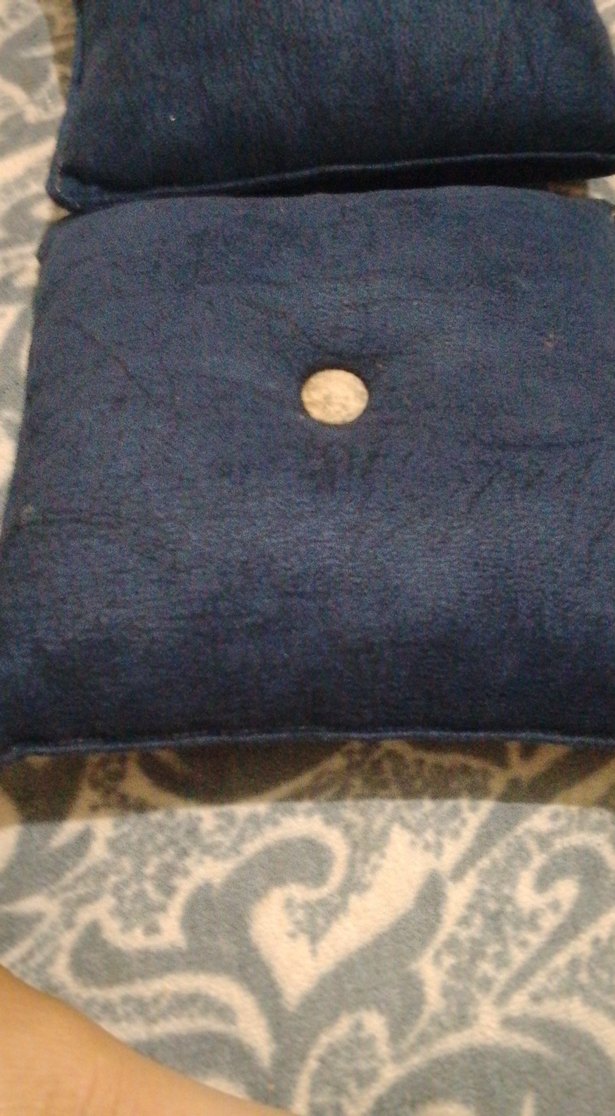 Yumuşak dokulu, ortasında düğme detaylı koyu mavi bohem tarzı yastık. Her mekana sıcaklık katar. ️