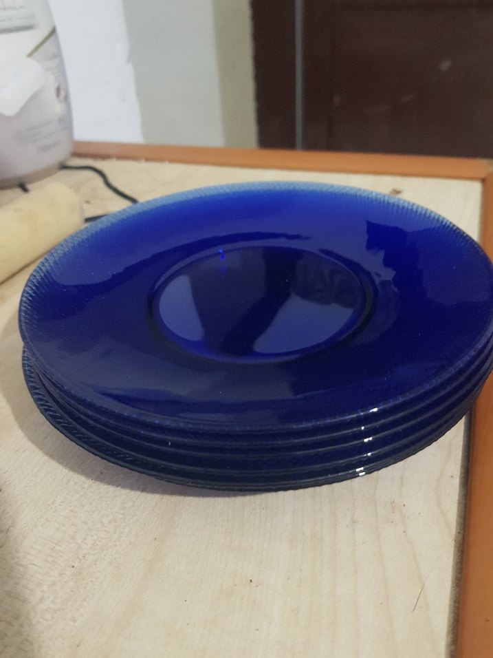 Koyu mavi renkte, bohem tarzında, desensiz yüzeye sahip tabak seti. ️6 tanedir. az kullanılmıştır.