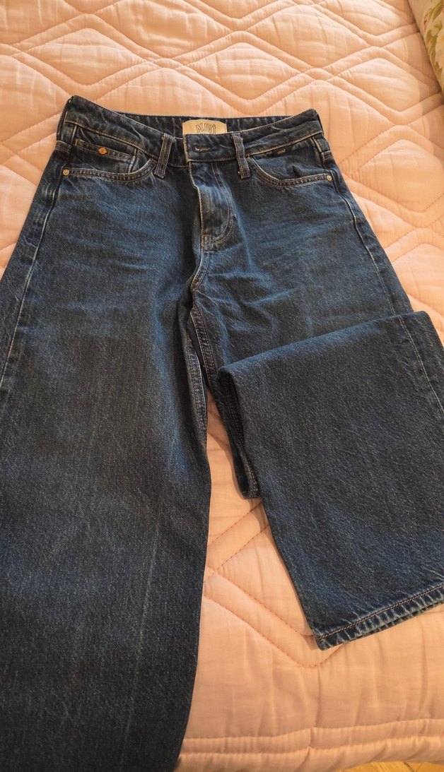 koyu mavi renkte, bol kesim ve midi boyda kadın denim jean. Günlük kullanıma uygun, desen içermeyen rahat bir model. beden 24/28