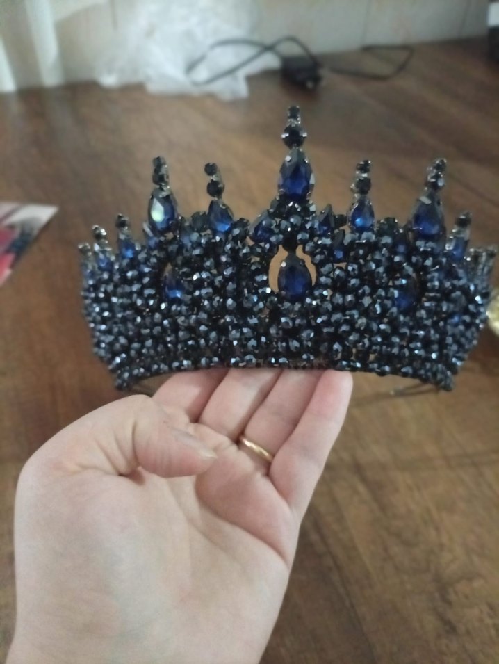 Koyu mavi boncuklarla süslenmiş, gotik stile sahip klasik şıklıkta saç aksesuarı. gelin tacı nisanimda 2 saat takıldı ama bazanin altında 3 taşı düşmüş