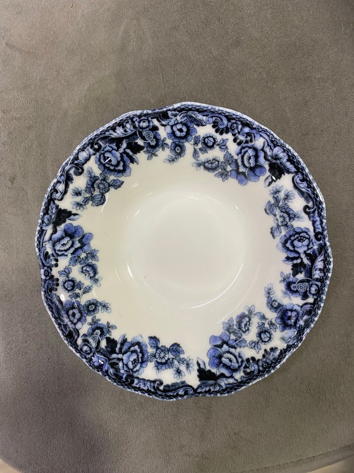Koyu mavi çiçek desenleriyle çevrili seramik kase, yiyecek servisi için uygundur. ️