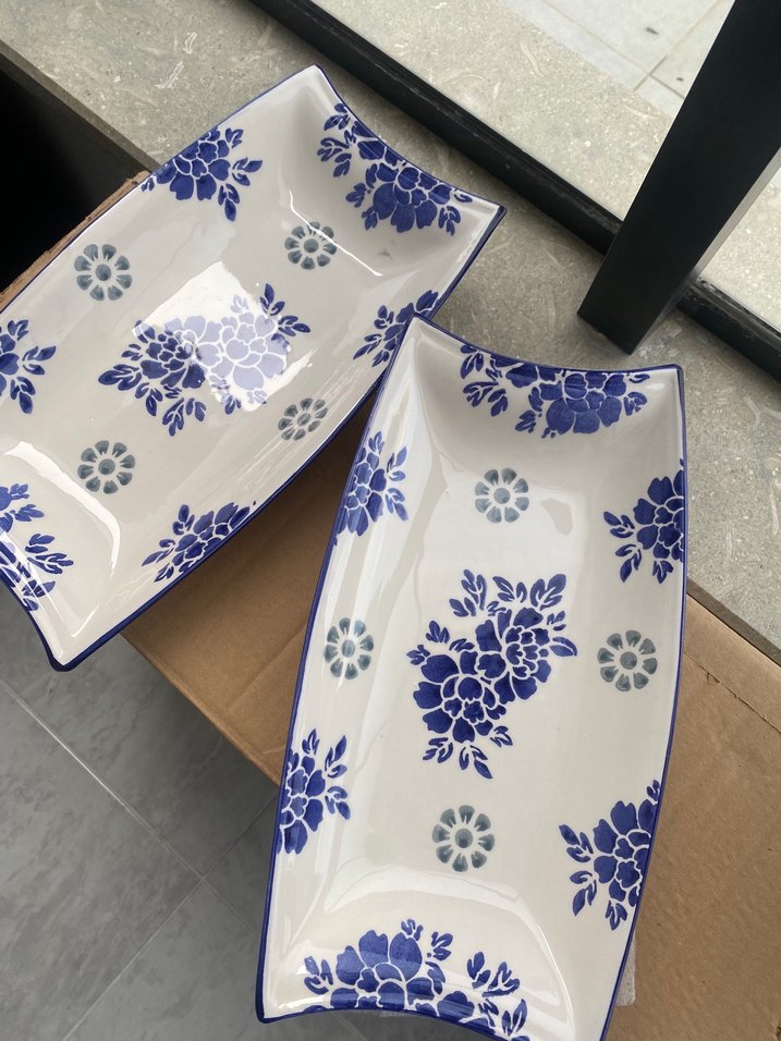 Koyu Mavi Çiçek Desenli Seramik salata kasesi