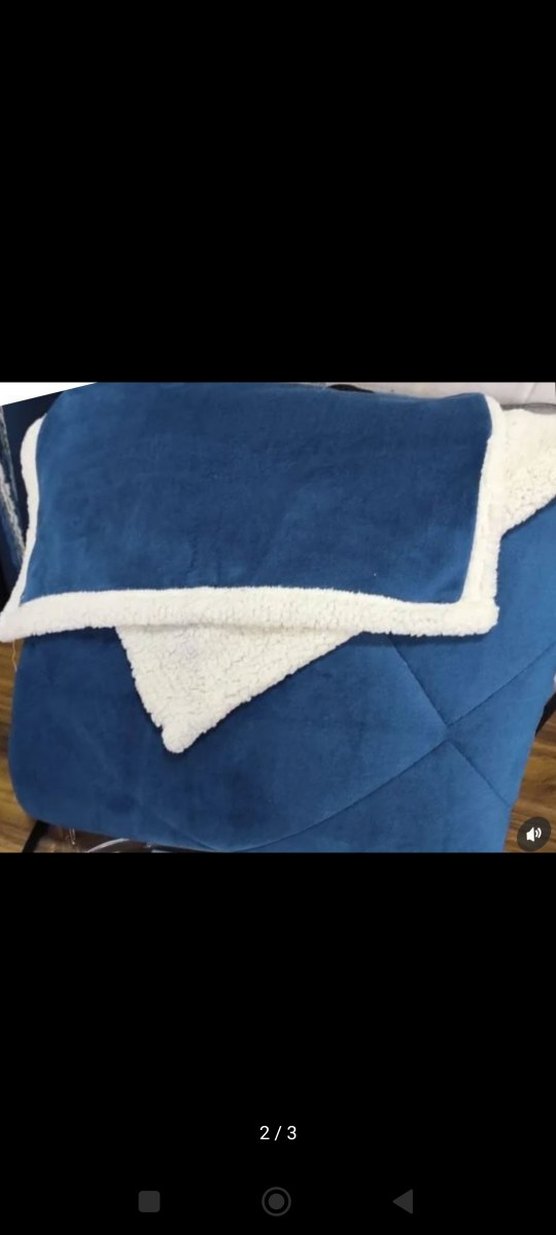 Bu yorgan, bir tarafı koyu mavi yumuşak kumaş, diğer tarafı beyaz peluş dokusu ile sıcaklık ve konfor sağlar. ️