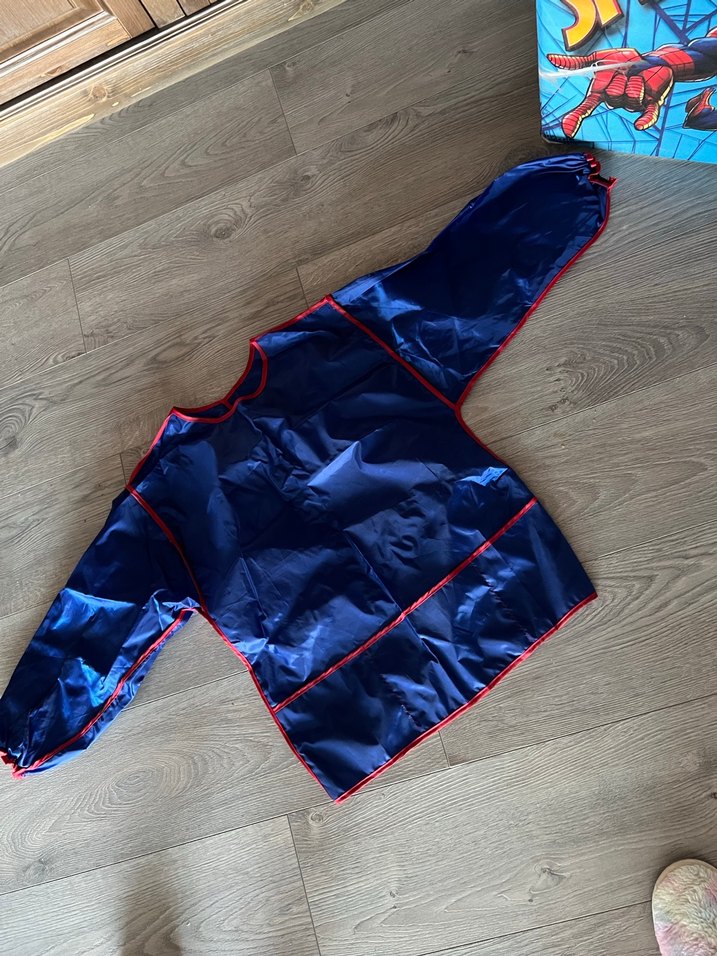 Koyu mavi renkte, uzun kollu ve kırmızı detaylı, suya dayanıklı kumaştan yapılmış çocuk önlüğü. Tam kollu koruma sağlar. Boy 60- ikikolarası 45 cm. Fabercastel markadır.
