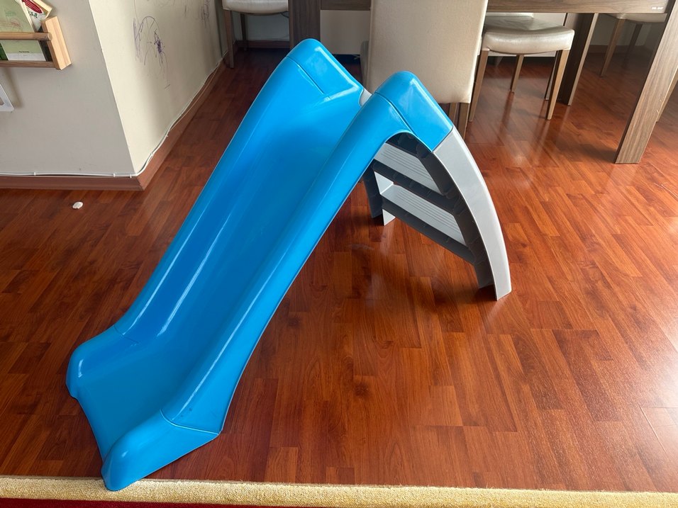 Az kullanılmış, iyi durumdaki sorunsuz kaydırağımız satılıktır. Mavi gri renktedir. İki parçadan oluşuyor. Büyüklüğü görüldüğü gibidir. Kargoyla gönderim mümkün değil.