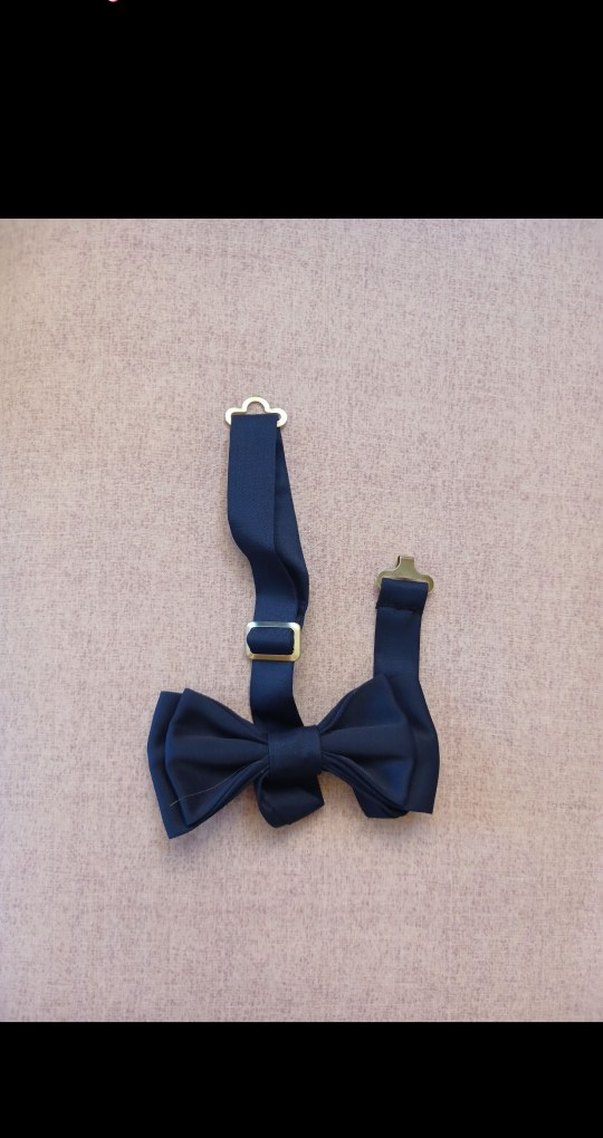 Koyu mavi renkli, ayarlanabilir bantlı çocuk papyonu, sentetik kumaştan üretilmiştir.
