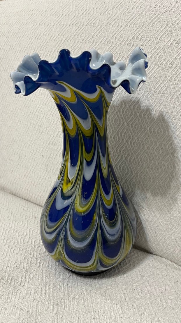 30 cm boyunda 1100 gram ağırlığında Tamamen Doğal renkli camların birleşiminden oluşan marul başlı renk cümbüşü Antika Koparma Cam Vazo … Atık yok , kusursuz …