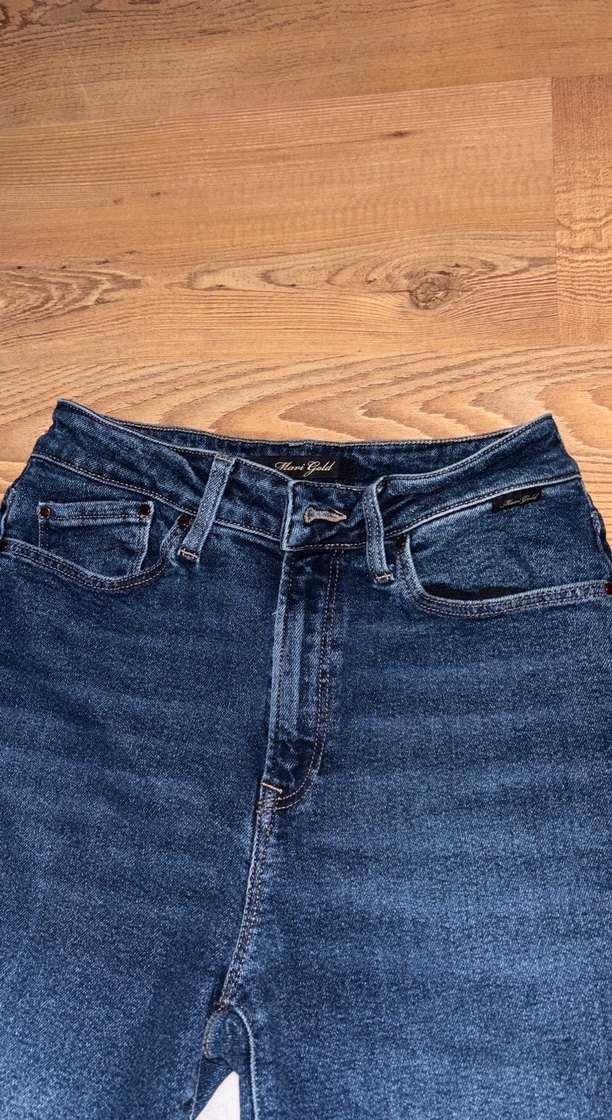 Parlak mavi kot kumaştan, normal kesim ve tokalı, midi boy kadın kot pantolon. Desensiz, günlük kullanıma uygun rahat stil.